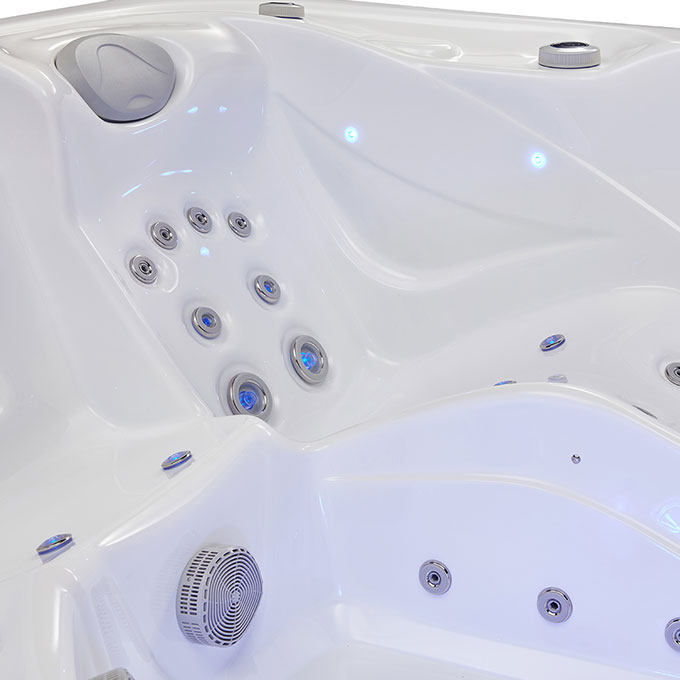 Шестьдесят три точно расположенные массажные форсунки дарят непревзойденный гидромассажный опыт. Многоуровневая система водных потоков обеспечивает бережный уход за телом - от мягкого расслабления до глубокого массажа, снимающего напряжение с мышц спины, плеч и ног. Каждая деталь продумана для вашего максимального удовольствия.