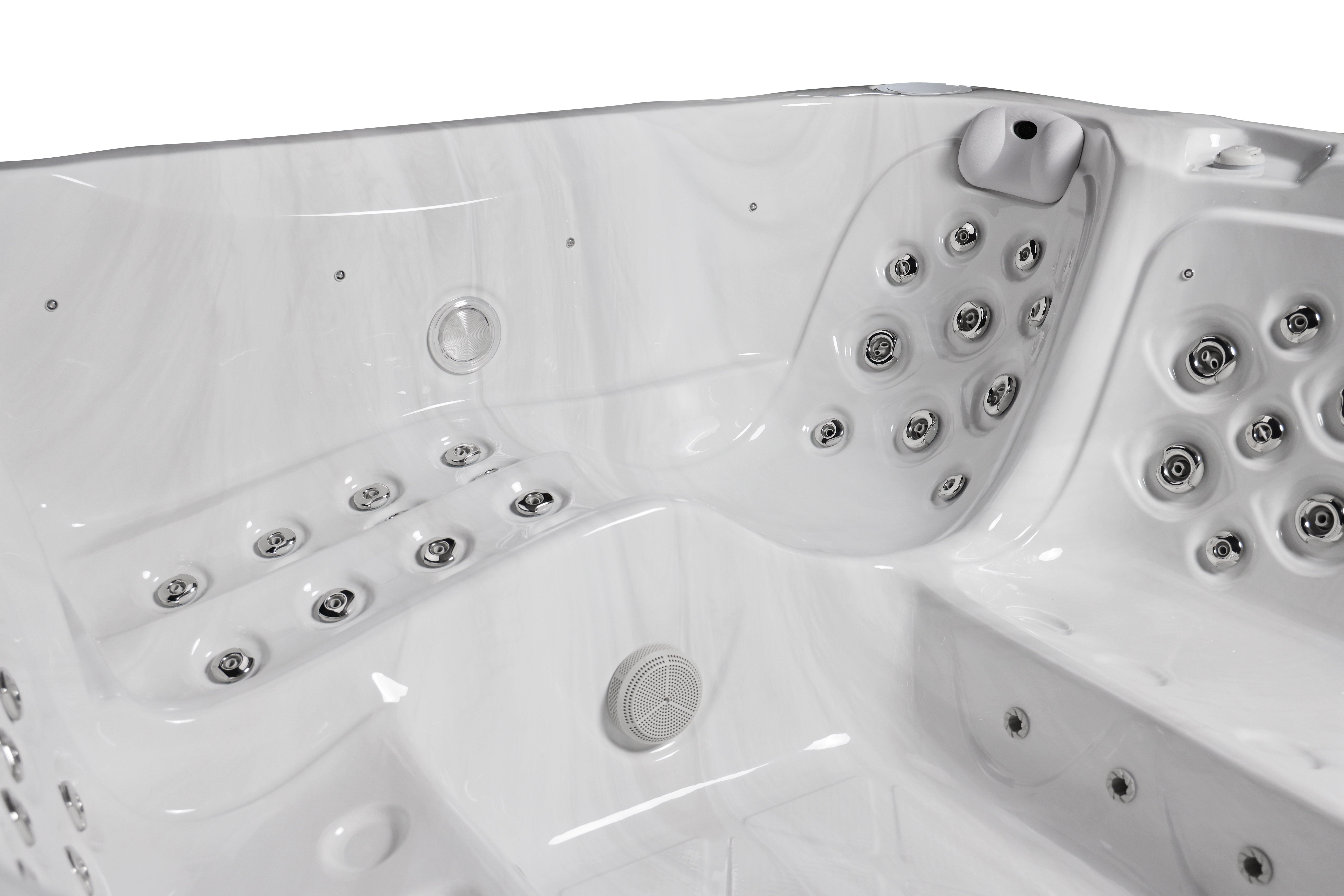 Модель комплектуется спа-крышкой для сохранения тепла и защиты, тремя подголовниками для комфортного размещения и ступенями для удобного доступа в бассейн.