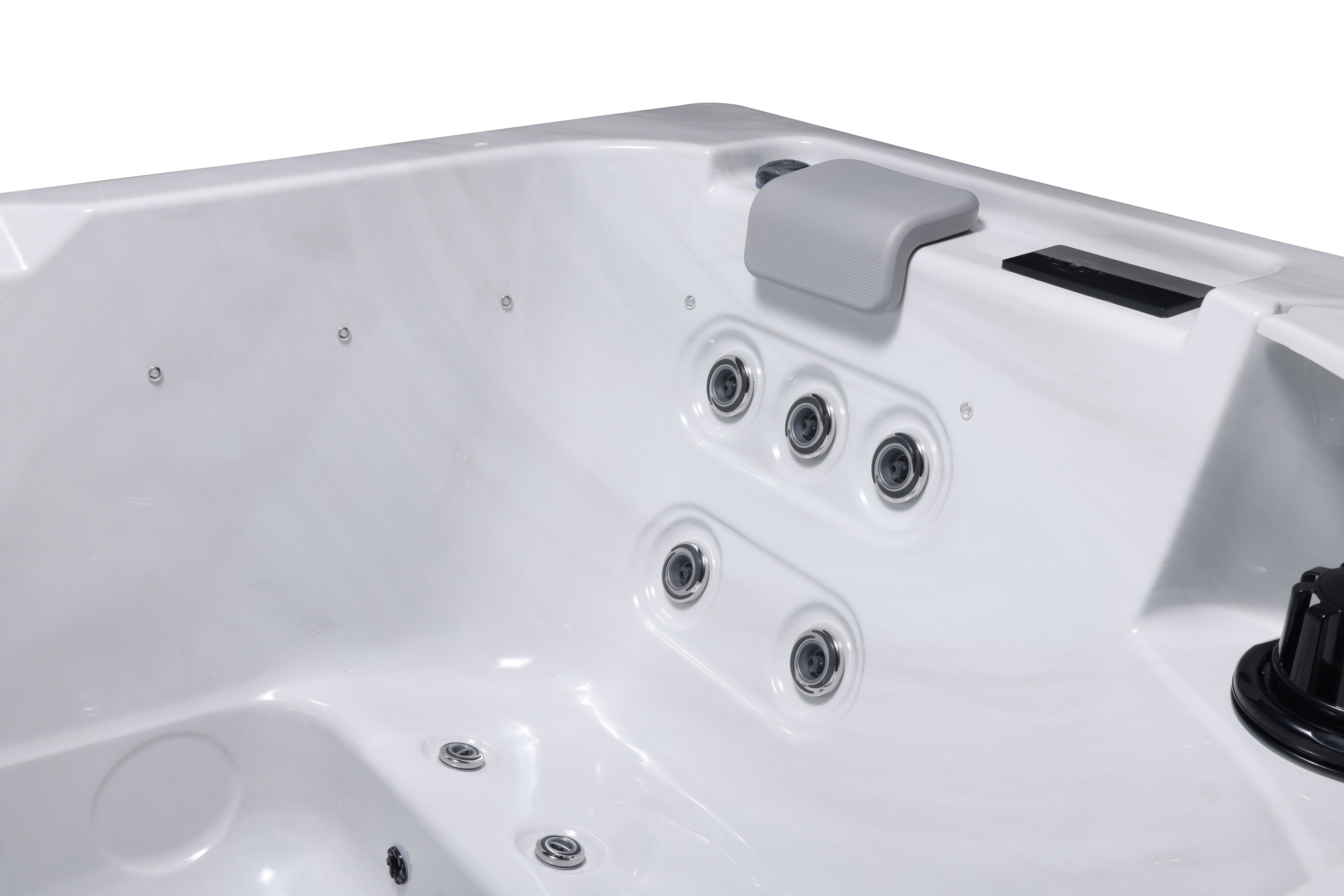 NordicSpa Magni с размером чаши 2,2 x 1,6 м идеально подходит для установки как в помещении, так и на улице. Компактная, но просторная чаша с тремя эргономичными подголовниками комфортно вмещает до трех человек, создавая уютную атмосферу для отдыха и общения.