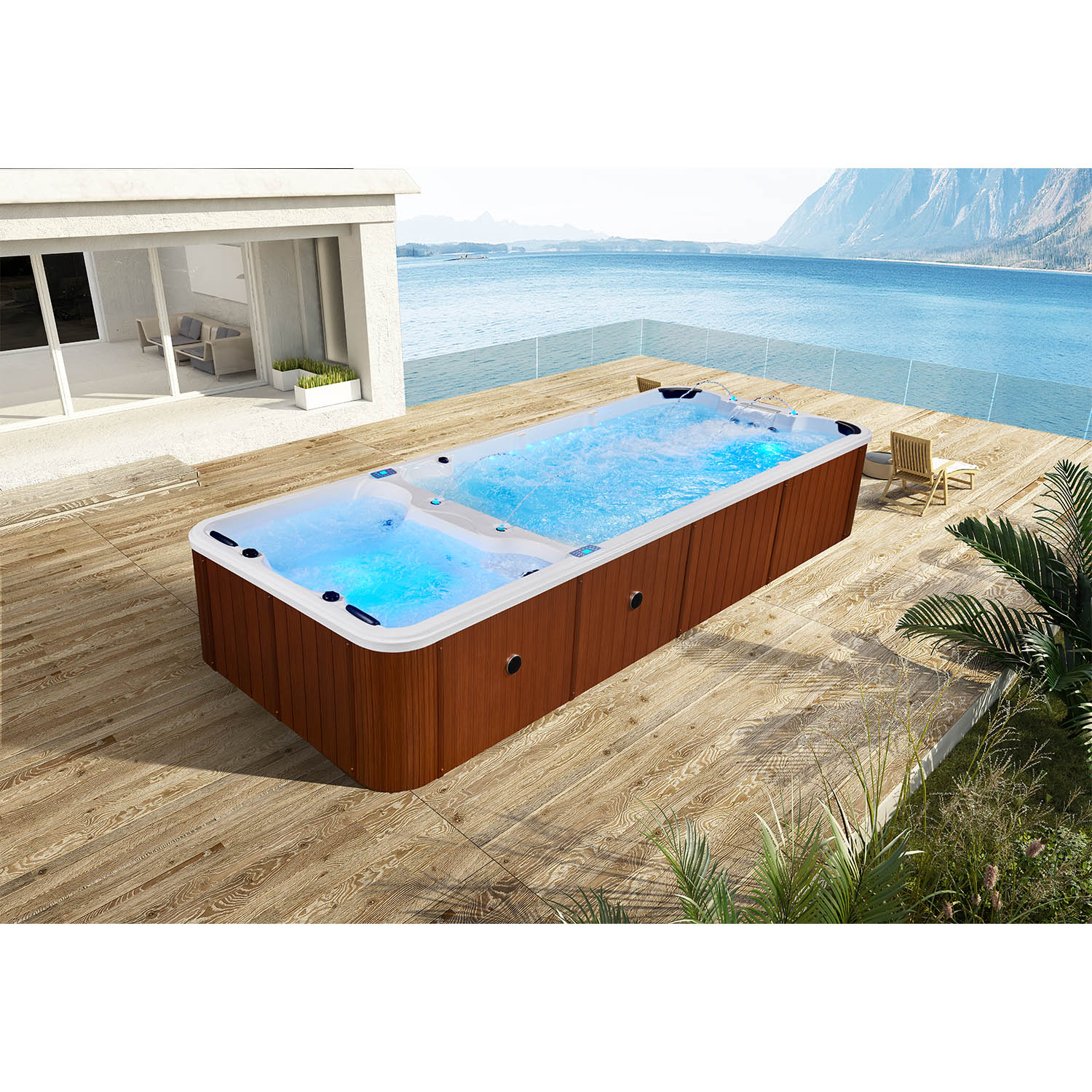 Данная модель бассейна компании Mexda имеет современное техническое оснащение, подходящее для наружной установки.