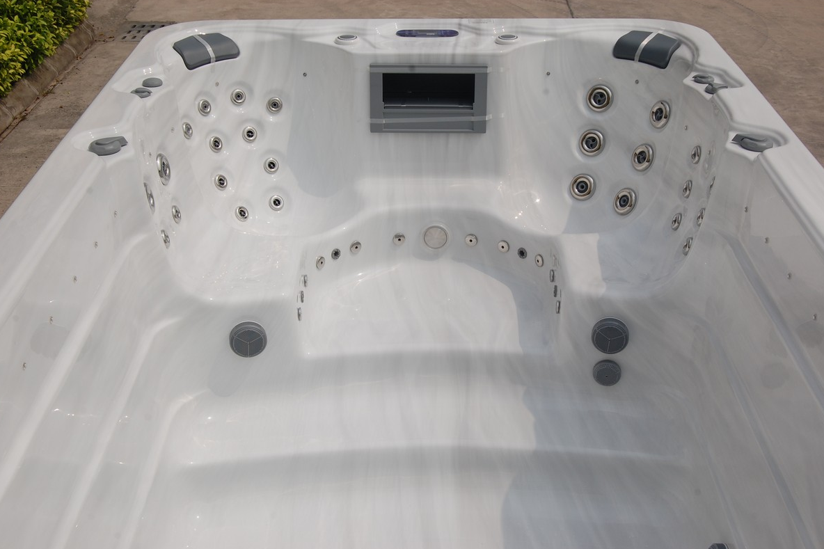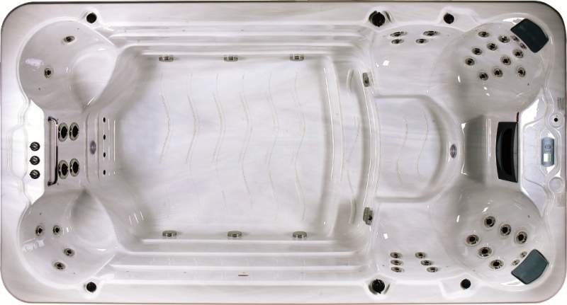 Данная модель плавательного бассейна компактна и в то же время многофункциональна. Плавательная зона просторна и отлично приспособлена для активных ежедневных тренировок. Также зона для плавания безопасна для детей и им очень понравится плескаться в бассейне, пока родители рядом наслаждаются гидромассажем в комфортабельных сидениях.