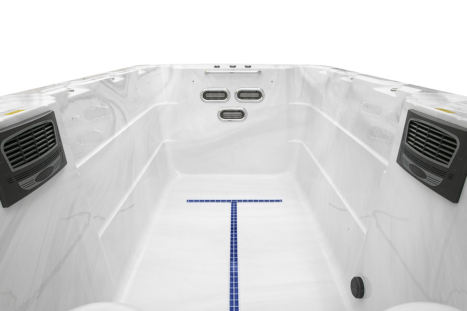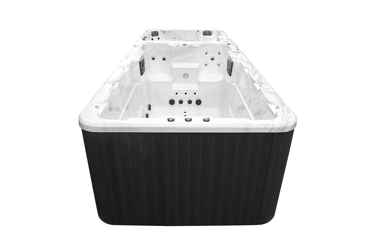 Четыре мощных насоса (два по 2,2 кВт и два по 1,5 кВт) работают в разных зонах, обеспечивая интенсивный массаж 62 форсунками. Продуманная конфигурация гарантирует эффективное воздействие на все группы мышц и создает оптимальные условия для плавания.