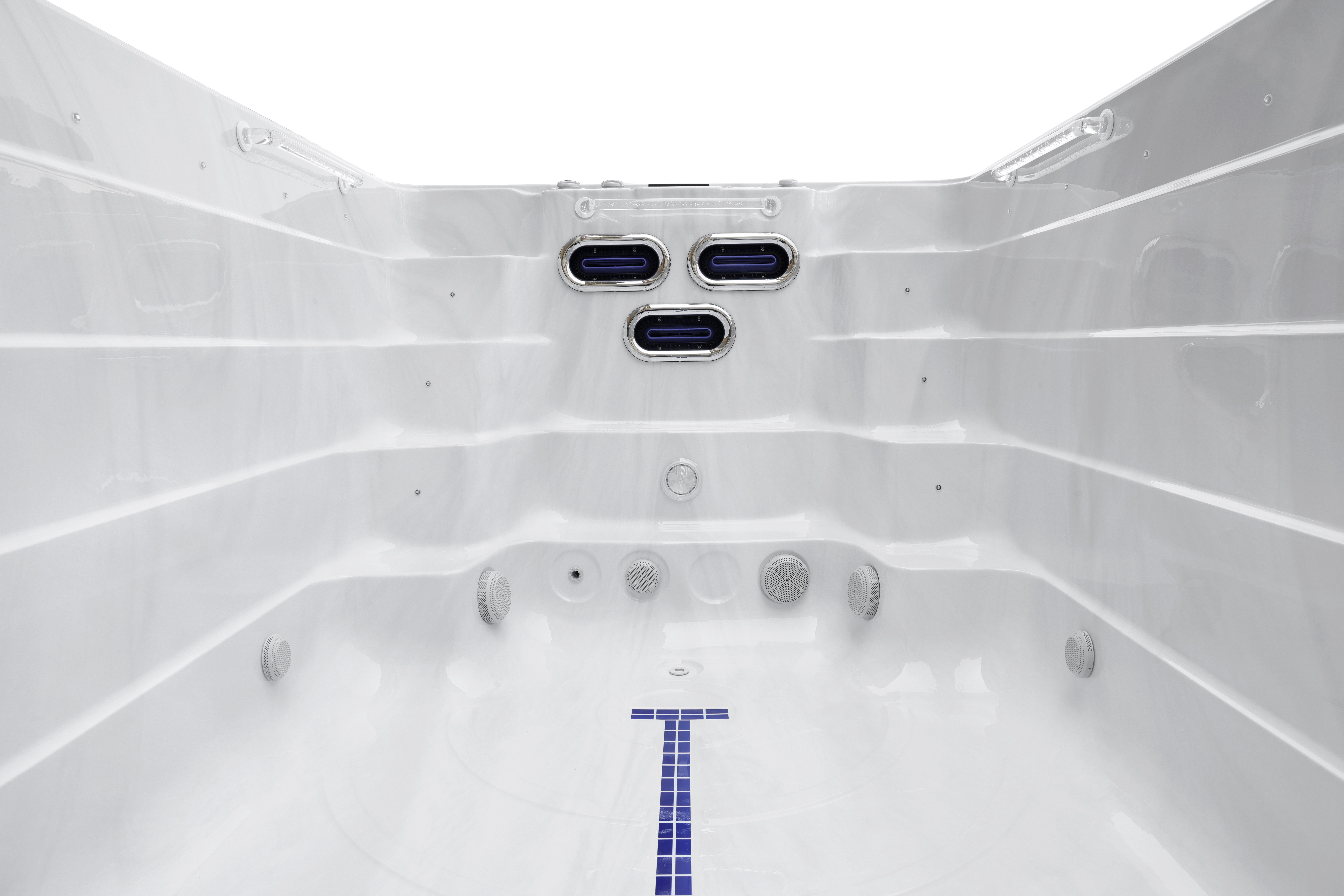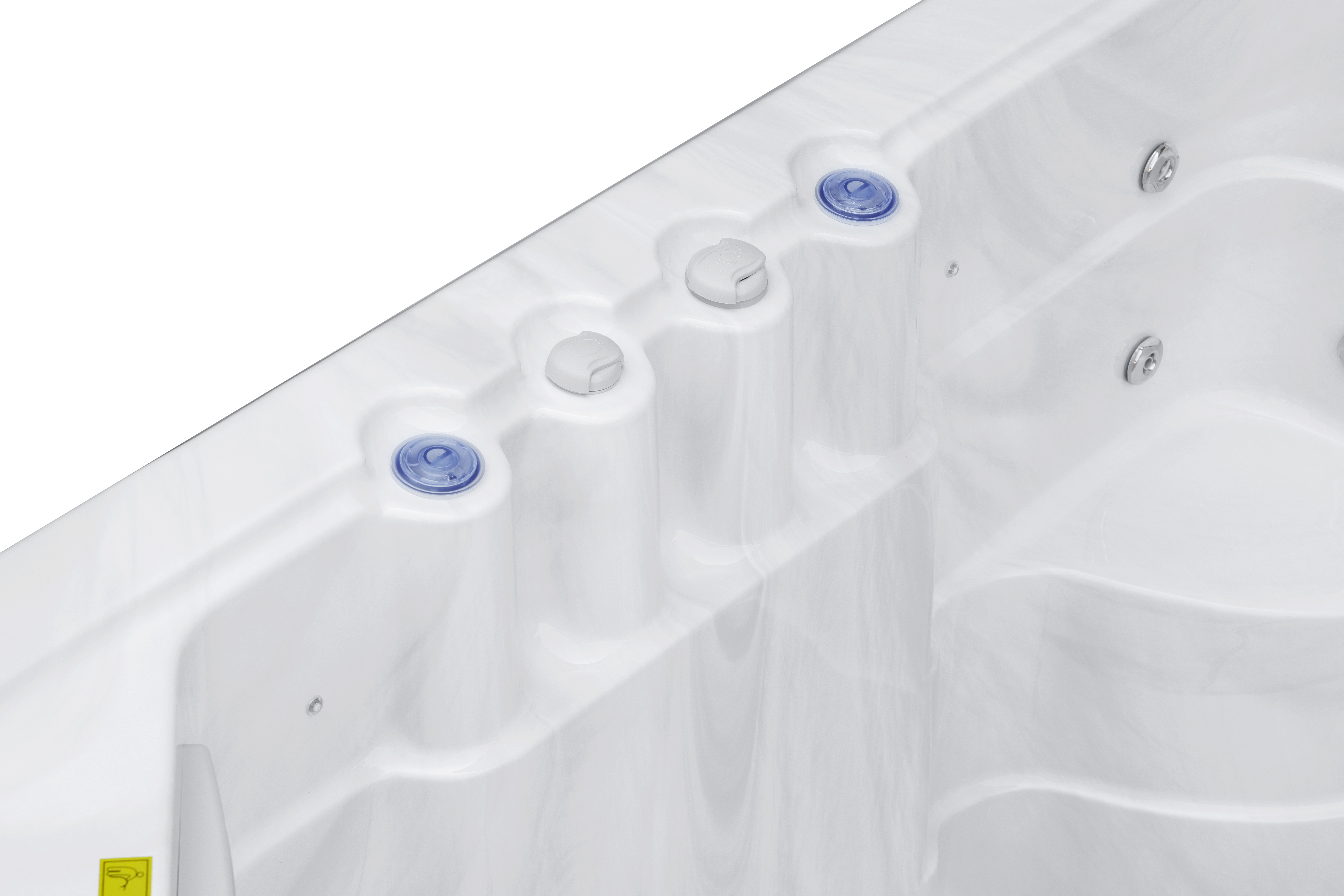 Четыре мощных насоса (два по 2,2 кВт, один 2,2 кВт и один 2,9 кВт) работают в разных зонах, обеспечивая интенсивный массаж 92 форсунками. Уникальная конфигурация гарантирует мощные водные потоки для эффективного массажа и комфортного плавания.